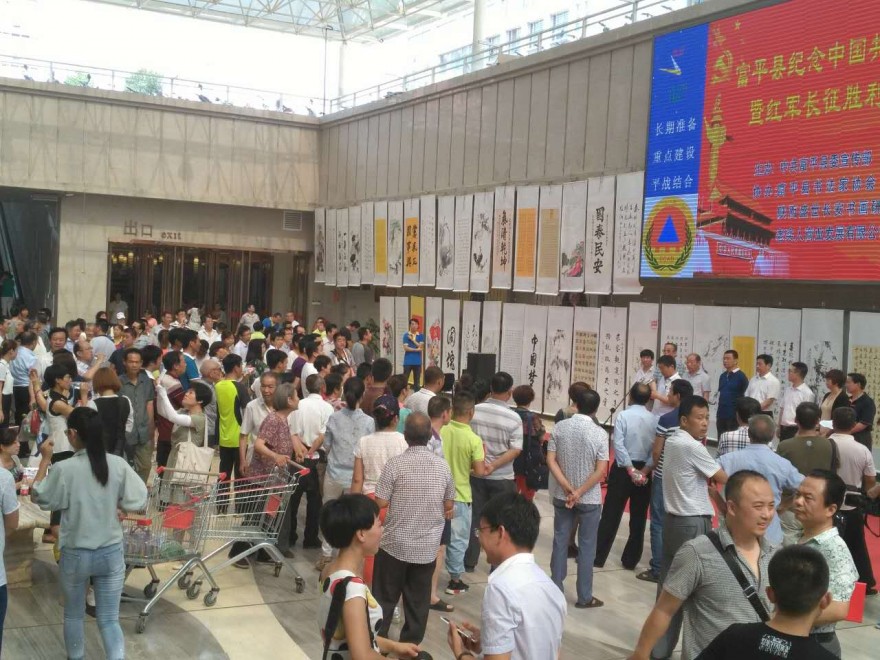为庆祝党的95岁华诞,纪念红军长征胜利80周年,传承我党光辉历程,展示书画艺术家、书画爱好者的风采,增强文化艺术交流、促进文化事业发展,由中共富平县委宣传部主办,富平老实人商业发展有限公司协办的“富平县纪念中国共产党成立95周年暨红军长征胜利80周年书画展”于2016年6月21日在老实人超市大厅隆重开幕举办。