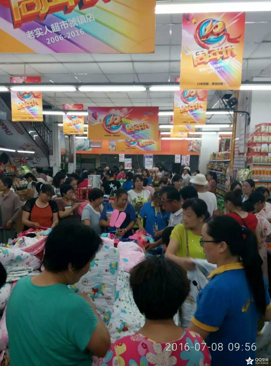 老实人虢镇店10周年店庆隆重开幕啦! 7月8日至7月17日“十年相知,众享盛惠”上千种特惠商品与新老顾客共享;抽奖、兑换活动惊喜不断;“十年同欢乐,蛋糕共分享”喜庆、热闹;更有别样欢乐,共享精彩的“感恩有你”员工自编自演联欢晚会,台上载歌载舞,台下欢呼呐喊,整个店庆活动气氛浓烈、人声鼎沸、轰动全城。